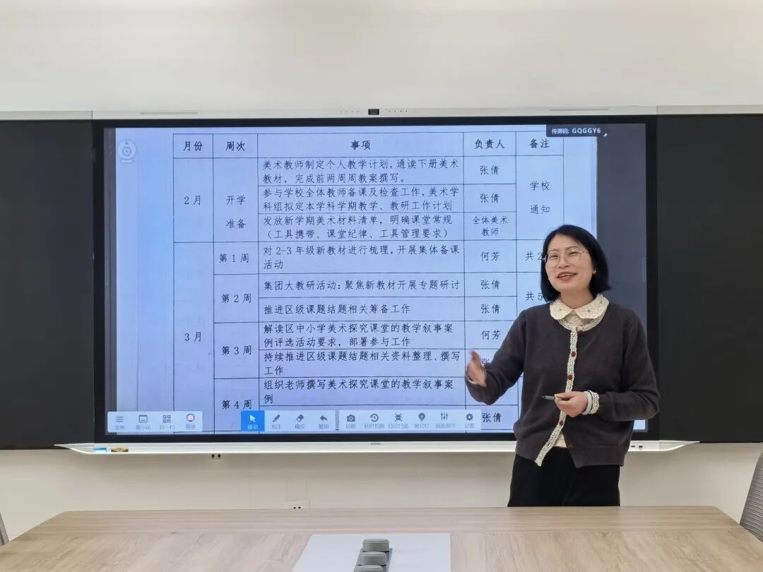从精准复盘到系统规划,从主题攻坚到课堂深耕,再到环境育人,本次教研活动环环相扣,是美术组践行“启智融新”理念的生动缩影。新学期,全体美术教师必将以此为新起点,深耕课堂,融新于趣,凝聚教共体美育的强大合力,让艺术真正成为启迪智慧、温润心灵的力量,为孩子们的全面发展插上充满想象与创造力的翅膀。