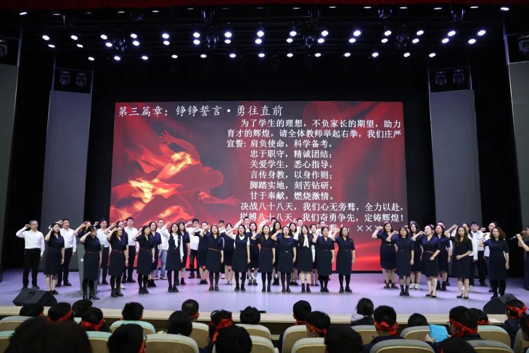 温情之后,是热血。全体初三老师走上舞台,高举右拳,目光如炬:“为了学生的理想,不负家长的重托,大家庄严宣誓:科学备考,精准导航;忠于职守,全程陪伴;悉心指导,耐心答疑;言传身教,以身作则!”