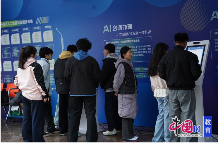 赛事期间,大赛还设置了由教育在线·就业桥提供的“AI赋能就业体验区”。该区域依托人工智能技术,围绕生涯探索、简历诊断、就业咨询和面试实战等模块,为参赛学生和观摩师生提供沉浸式就业体验服务。