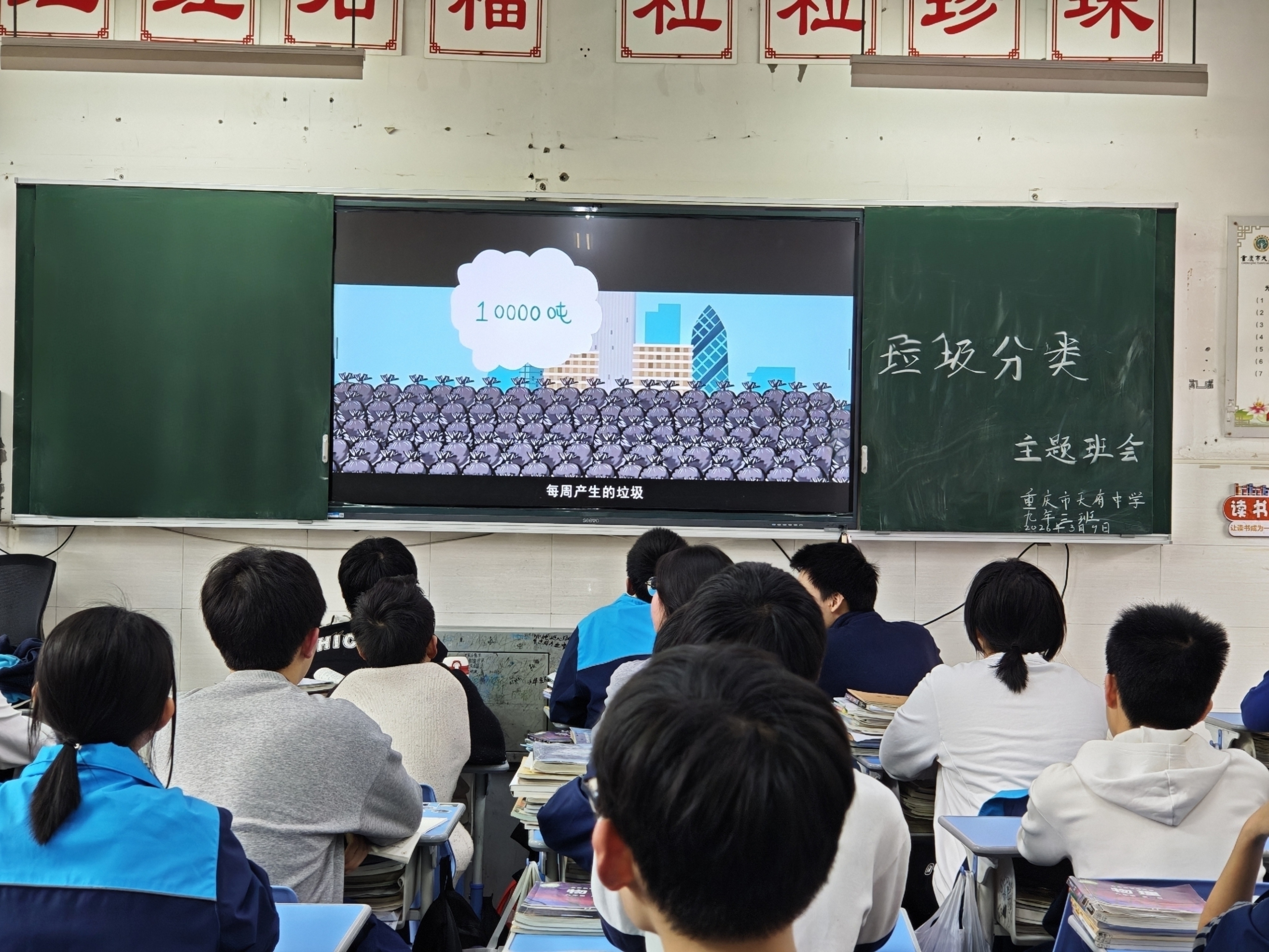 新学期伊始,重庆市天府中学以“开学‘净’行时:垃圾分类,从第一课开始”为主题,于2026年3月在各班级组织开展垃圾分类宣传教育活动。活动紧扣生态文明教育主线,着力推动环保意识内化于心、外化于行,在全校范围内营造了“人人参与、共建绿色校园”的良好氛围。