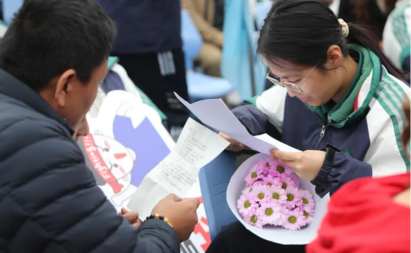 最温情的时刻,是学生与家长互赠信件。一封封手写的信,打开的是平日里说不出口的话。读着读着,有人红了眼眶,有人悄悄握紧了彼此的手。随后的30秒拥抱,让整个会场沉浸在温暖之中。