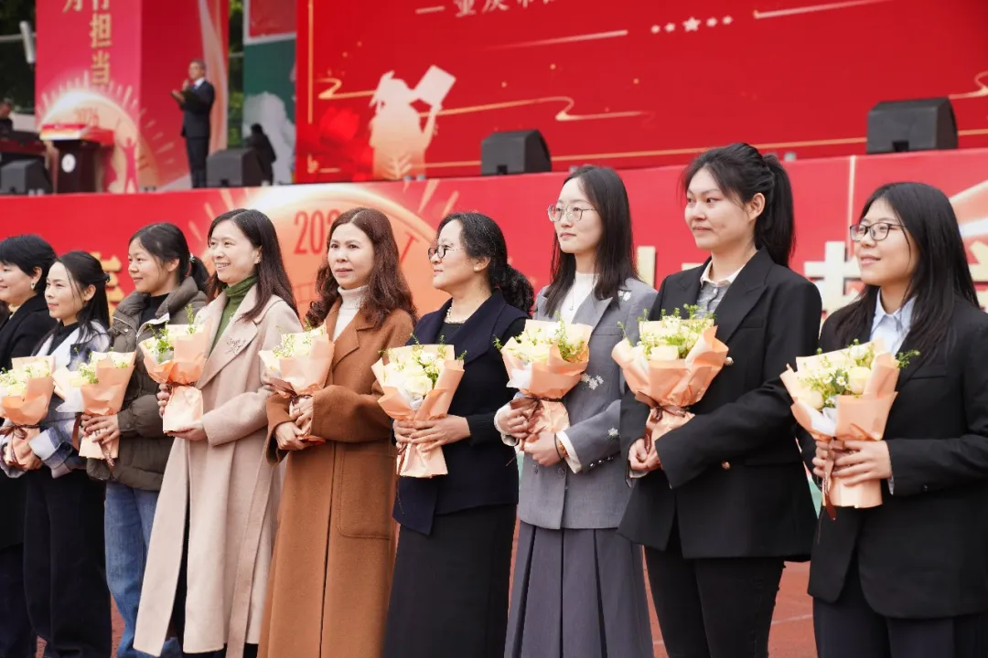 手握战旗,每一位班主任都面向自己的班级,说出了埋藏在心底的话——“从青涩莽撞到成熟稳重,我为你们点赞!”“希望大家不负韶华,拼出热辣滚烫的青春!”“祝你们光线导线磁感线通通上线,电场磁场重力场笑傲考场!”……短短几句,让许多学生瞬间红了眼眶。旗帜在风中飘扬,师者的深情在这一刻直抵人心。