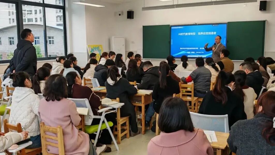 人工智能浪潮奔涌而至,教育正迎来一场深刻的理念革命与实践变革。为全面推进AI时代教育转型,更新教师教育认知,重构新时代课堂样态,2026年3月16日,重庆市沙坪坝区树人和平小学校特邀重庆市沙坪坝区教师进修学院资深教研员吴行鹏老师莅临学校,开展《AI时代教育转型:培养自觉创造者》的专题培训。