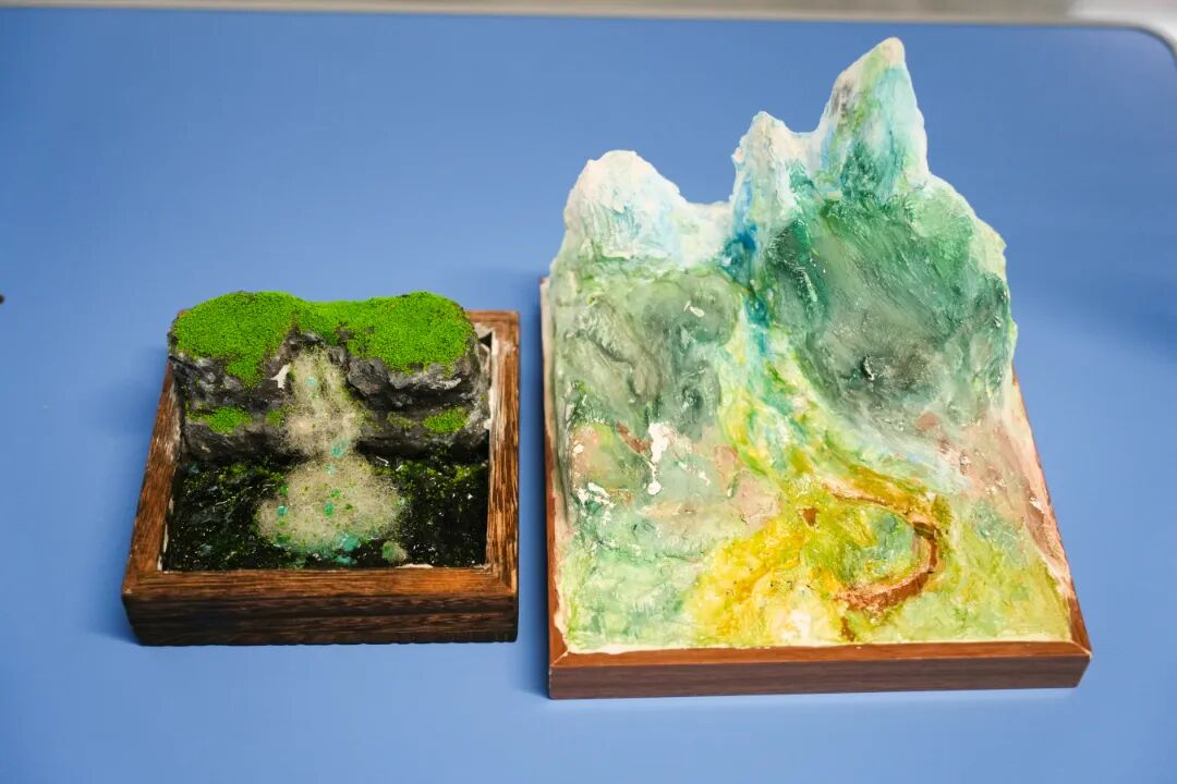 黏土捏就山地模型,画笔描绘地球脉动,思维导图梳理水循环与大气变迁。从指尖塑造到脑中归纳,地理知识在创意中“活”了起来。