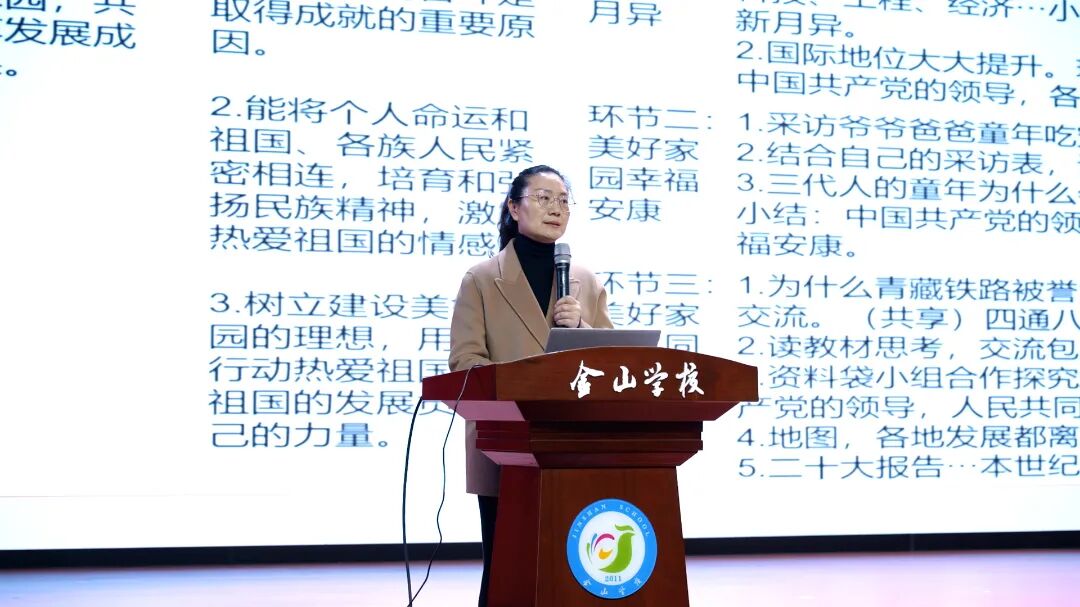 金山教育集团金童校区彭燕老师执教《共建美好家园》,将“中华民族一家亲”的理念自然融入教学,引导学生在交流、体验、感悟中理解团结互助、共建共享的深刻内涵,呈现了一堂有温度、有深度、有实效的思政课。