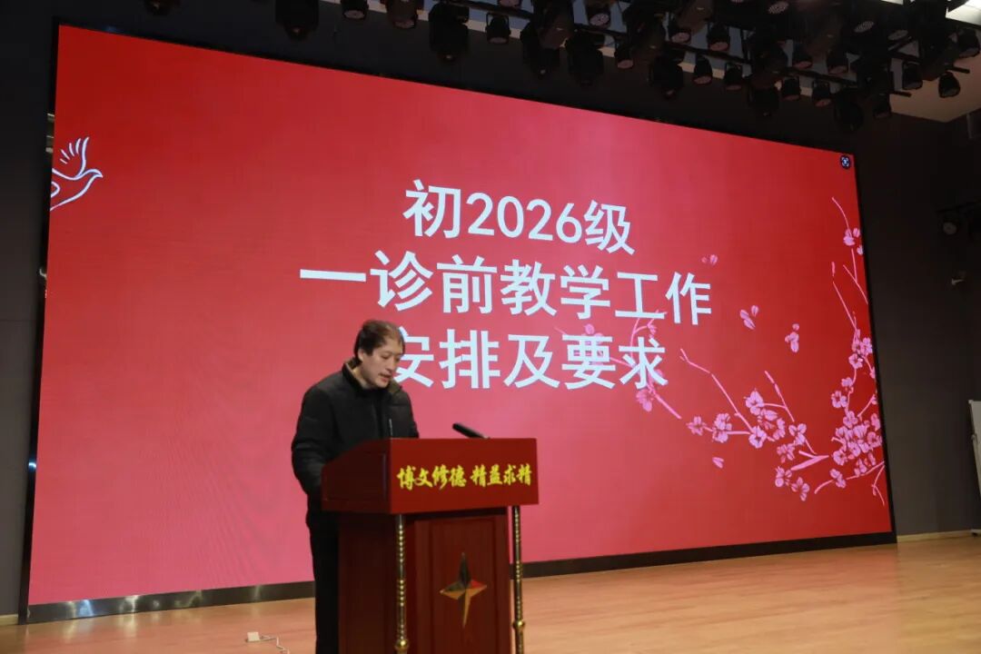 章显林书记发表动员寄语,为全体初三教师冲刺一诊、备战中考注入了奋进力量。他勉励大家,要拿出万马奔腾的气势、一马当先的担当、快马加鞭的劲头,抓实备考、奋勇争先;同时坚守以人为本的底线,心怀家国天下的格局,用心育人、协同发力,祝愿初三年级一诊初战告捷,中考再创辉煌!