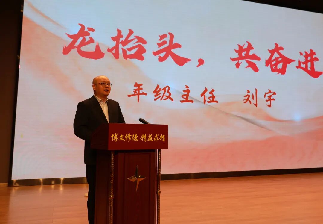 龙已抬头,春潮澎湃。初三年级主任刘宇表态发言,在二月二龙抬头的好日子,刘主任以“龙抬头,共奋进”勉励全体初三教师:要做“龙抬头”的引领者,以“博文”的视野与“修德”的担当,做备考的“战略家”,做成长的“护航员”,为学子们校准航向;做“蓄龙力”的锻造者,以“精益求精”的执着,精在目标管理、精在过程落实、精在合力凝聚,为学子们每一次突破赋能;共同期待“跃龙门”的辉煌,以全情的投入见证青春的成人礼。刘主任的表态铿锵有力,激发了全体初三教师的斗志,大家必将与孩子们一起,见证他们如巨龙腾空,奔赴心之所向。