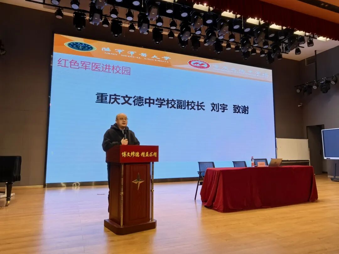 2026年3月19日,红色军医进校园活动走进重庆文德中学校,陆军军医大学附属第一医院赵颂涛副教授、李艳少校受邀到重庆文德中学校,开展《常见校园传染病预防知识》专题讲座,为学校师生送上专业健康指导。