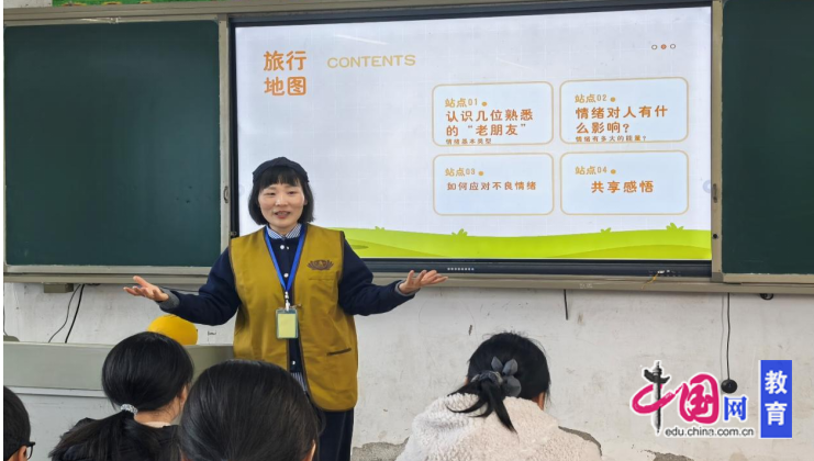 在“情绪有多大的能量”环节,李梅通过分组编号,组织同学们开展小组讨论,志愿者们穿梭其间帮助孩子们表达情绪,倾听孩子们的心声。活动中还设置了“情绪地图”站点,从“认识几位熟悉的‘老朋友’”到“情绪对人有什么影响”,从“如何应对不良情绪”到“共享感悟”,层层递进,引导孩子们正视情绪、接纳情绪、管理情绪。