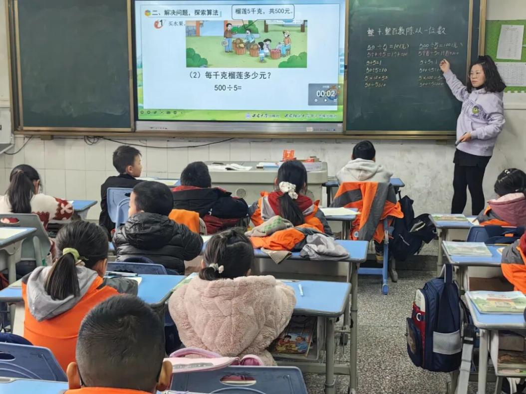 本次活动首先呈现了两节精彩的研讨课。蔡显英老师执教五年级《因数、倍数整理与复习》,以清晰的脉络引导学生构建知识网络;郭艳红老师执教三年级《整十数、整百数除以一位数》,立足算理算法,夯实学生计算基础。值得一提的是,两位执教老师在课前均借助AI技术对教学设计进行了打磨,在集体智慧的碰撞中不断优化,最终呈现了两堂高质量的教研课,展现了技术与教学深度融合的实践探索。
