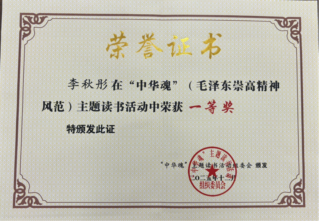 在2025年“中华魂”(毛泽东崇高精神风范)主题读书活动中,重庆南川三中李秋彤同学凭借其深厚的文化底蕴与卓越的综合素养,一路过关斩将,荣获本次活动最高荣誉一等奖!