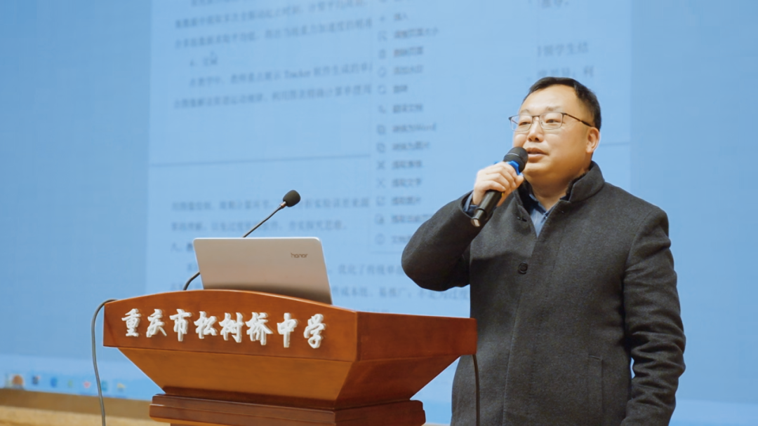 松树桥中学党委副书记、校长冉红芳首先致欢迎辞。她代表学校向全区物理同仁的到来表示热烈欢迎。并分享了对“品质教研”的理解:“教研的本质,是让每一个老师都不孤单。今天大家聚在这里,不是为了证明谁更厉害,而是为了让每一个学生,无论在哪所学校,都能遇到更好的物理课。”