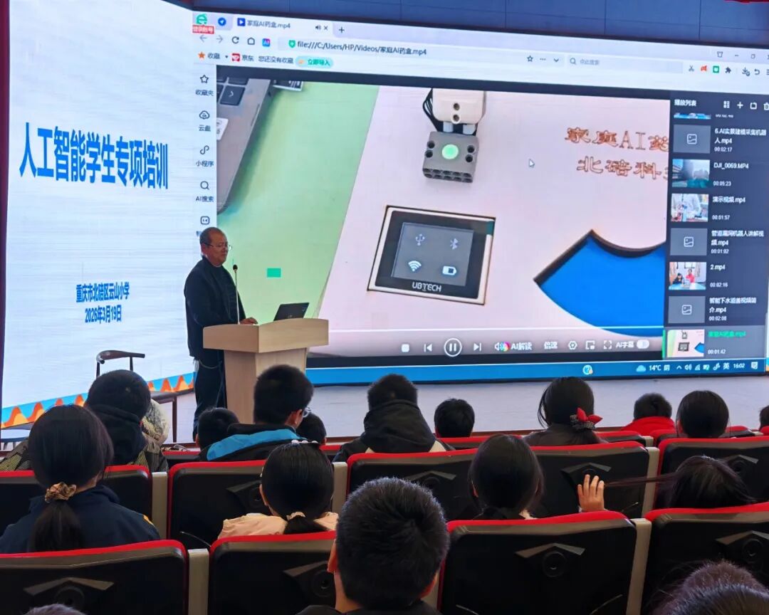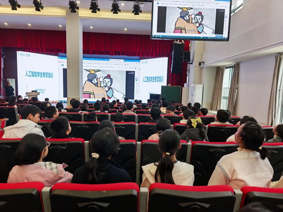 为深入落实教育数字化战略行动,推动人工智能技术与基础教育深度融合,培养学生科技创新素养与数字思维,重庆市北碚区云山小学本学期在延时服务时间,借助国家中小学智慧教育平台,对全体学生分年级进行人工智能专项培训。2026年3月19日,六年级的孩子们在学校报告厅开启了一场趣味人工智能探索之旅。