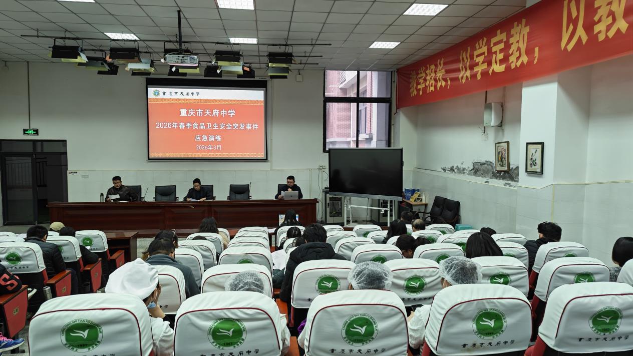 筑牢食品安全防线,守护师生健康安全。为切实保障全校师生身体健康和生命安全,全面提升学校应对食品卫生安全突发事件的快速反应、协同处置和应急保障能力,近期,重庆市天府中学精心组织开展校园食品卫生安全突发事件应急演练,全体教职工及相关岗位人员全程参与,演练取得圆满成功。