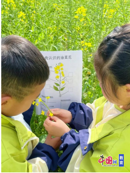 大班的孩子们还化身小小自然探索者,解密油菜花的生长密码,寻觅春日野菜踪迹,探究风的奇妙轨迹,在观察与实践中,读懂生命的节律,解锁自然的秘语。