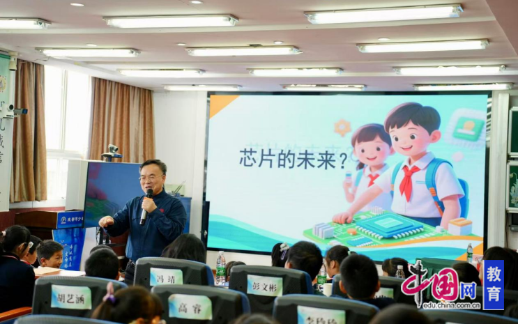 近日,成都市少城小学举行以“‘芯’光闪耀 童心探梦”为主题的科学家进校园主题活动。北京大学教授、北京大学深圳芯片重点实验室主任何进教授带来一场“神奇有趣的芯片 科技和美好未来”主题讲座,让孩子们在直观体验与热烈互动中,解锁“中国芯”的无穷奥秘。