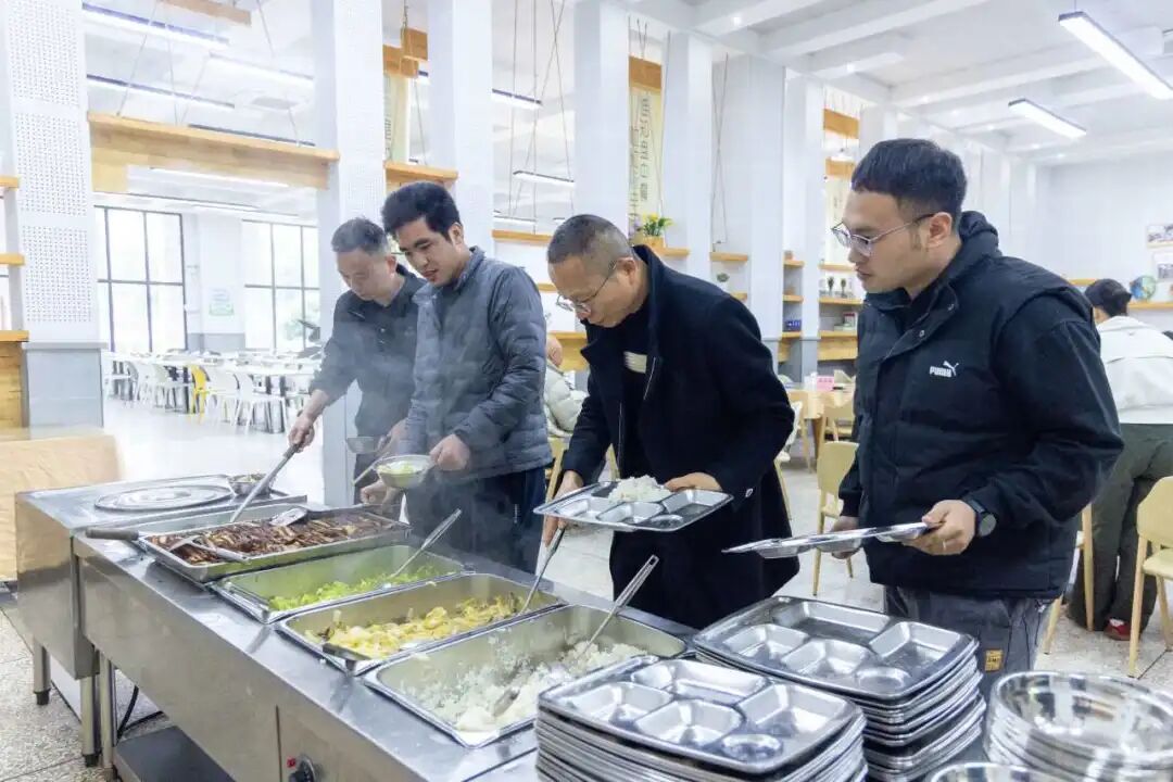 活动最后,全体与会人员在双山实验小学食堂体验学生营养餐,实地检验校园餐的菜品品质、口味搭配与营养水平,为后续优化学生餐食、完善营养搭配方案提供了直接的体验反馈。