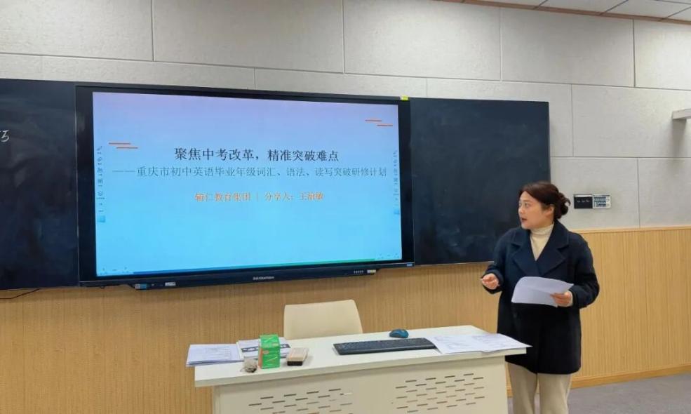 王渝敏老师作词汇、语法、读写突破研修计划分享,立足重庆中考考纲,解读三大模块备考重点,提出词汇落实三层识记目标、语法聚焦高频易错点、读写强化技巧与素材积累,并制定阶段性研修计划,为集团各校提供统一备考框架。