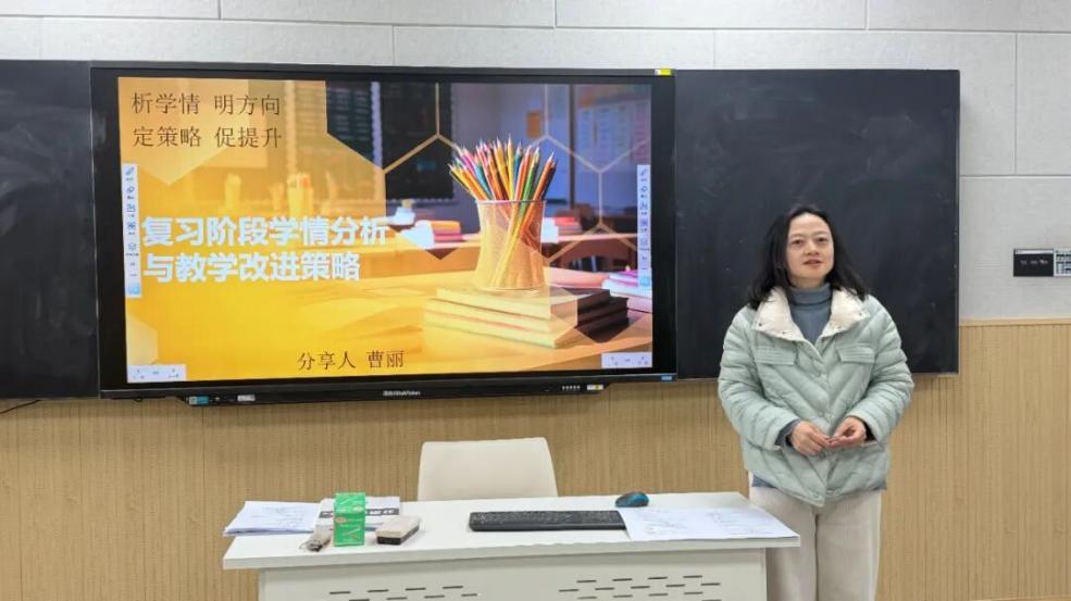 曹丽老师分享学情分析与教学改进策略,从知识掌握、学习状态等四维度分析学生情况,指出基础不扎实、运用不灵活等共性问题,针对性提出优化课堂、分层教学、家校协同、定期检测等策略,提升复习教学的针对性与有效性。