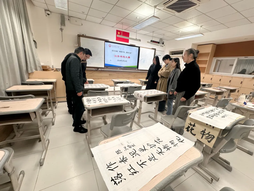 书写环节结束后,评委老师们即刻投入评审工作,从书写姿势、书写规范、间架结构、卷面整洁四个维度,独立打分、公平评判。他们细致入微地审核每一份作品,用专业与严谨守护大赛的公平公正,用耐心与责任为每一位同学的努力点赞。语文老师们的辛勤付出,为大赛标上了公正严谨的注脚,成为赛场背后最温暖的力量。
