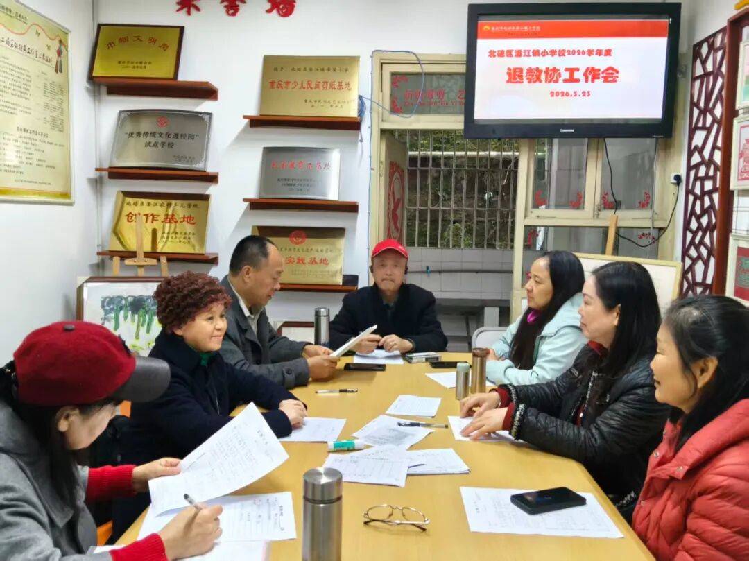 3月23日上午,重庆市北碚区澄江镇小学校2026年退教协工作会议圆满召开。会议由退教协蒋跃新理事长主持,学校党政领导班子成员与七位组长齐聚一堂,以凝聚银发力量、共促学校发展为目标,共谋退教协工作新路径,同绘学校发展新蓝图,为学校90周年办学成果展筹备凝聚多方合力。