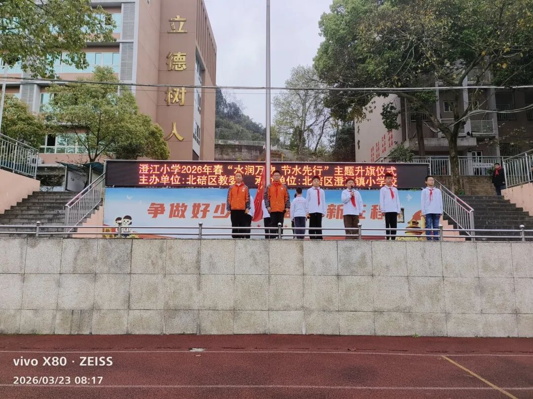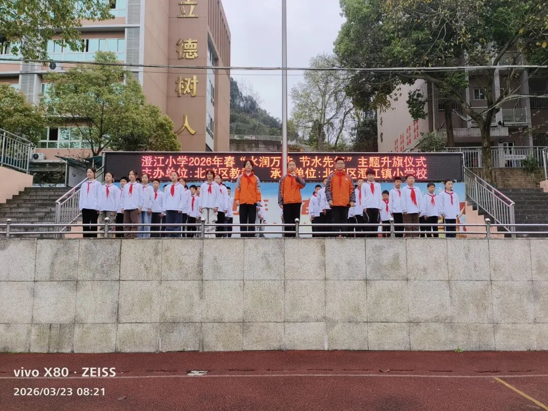 北碚区澄江小学举行“小水滴,大担当”主题升旗仪式