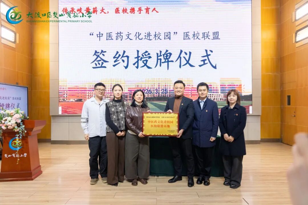 3月25日,重庆市大渡口区双山实验小学与九龙坡区中医院“中医药文化进校园”医校联盟启动仪式顺利举行,双方正式缔结合作,共同开启中医药文化浸润校园、守护师生健康的育人新征程。本次医校联盟的建立,旨在响应国家推动中医药传承创新发展的号召,将中华优秀中医药文化引入校园,让孩子们在启蒙阶段触摸中华文明根脉,播下文化自信的种子,实现文化传承与健康育人的双向赋能。