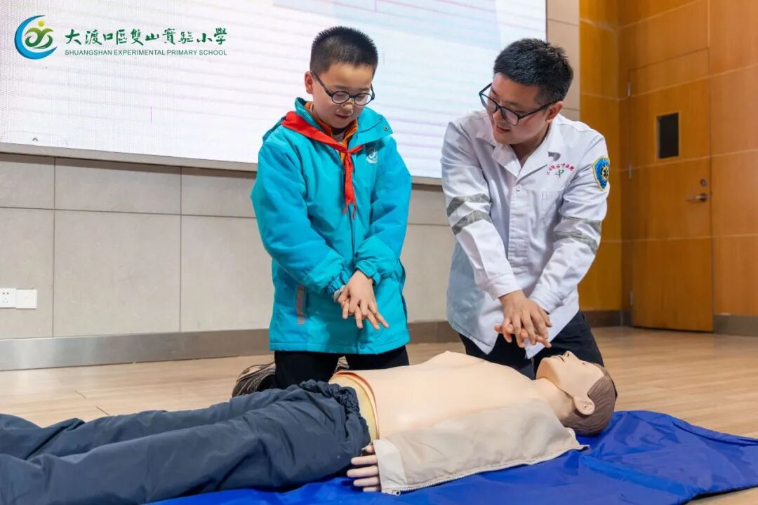九龙坡区中医院急诊科主治医师金德茂带来专业的急救知识专题讲座,不仅深入浅出地普及海姆立克急救法等实用技能,还特别邀请现场同学上台参与互动,手把手指导同学们进行心肺复苏实操演示,让大家在亲身体验中掌握急救要点,收获满满知识与技能,为校园安全筑牢防线。