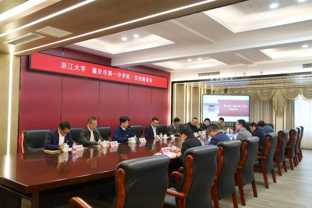 科普活动前,浙江大学信息与电子工程学院党委书记孙棋、浙江大学重庆校友会会长陈伟民一行与重庆一中校长毛明山、副校长唐吉耀及教务处等部门干部举行了座谈交流,双方围绕拔尖创新人才培养、深化校际合作等议题进行了深入探讨。