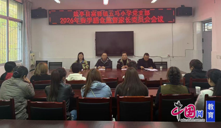 3月26日,绵阳市盐亭县五马小学顺利召开膳食监督委员会会议暨学生食堂开放日活动。本次会议由德育主任张丹主持,校长柳战军、分管食堂工作副校长蒲松、后勤人员何友毅以及家委会全体委员参会,共商校园膳食管理事宜,守护学生“舌尖上的安全”。
