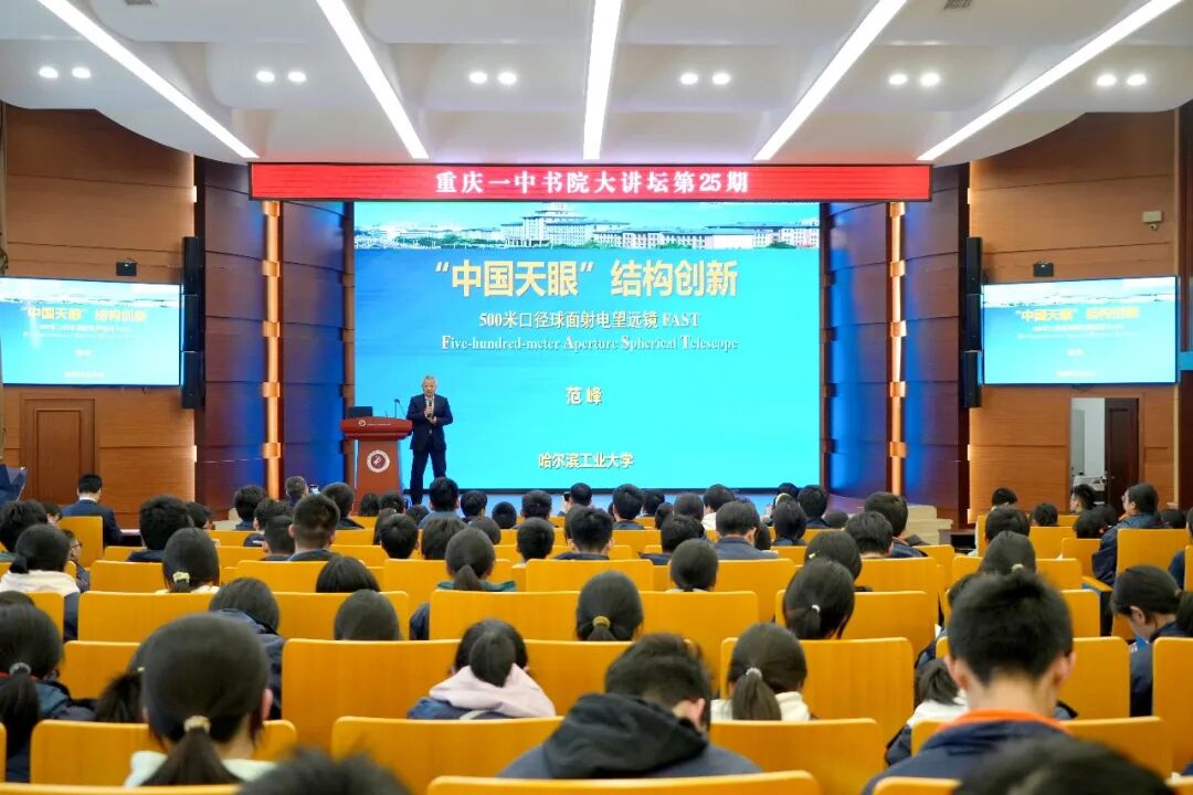 值此重庆一中建校95周年之际,重庆一中书院大讲坛第25期正式开讲!3月24日下午,哈尔滨工业大学副校长、中国天眼 FAST 结构系统总工程师范峰教授,亲临校园,为重庆一中学子带来《“中国天眼” 结构创新——500 米口径球面射电望远镜FAST》主题讲座,一堂立足国家重器、贯通学科知识、点燃青春理想的科技公开课,就此展开。