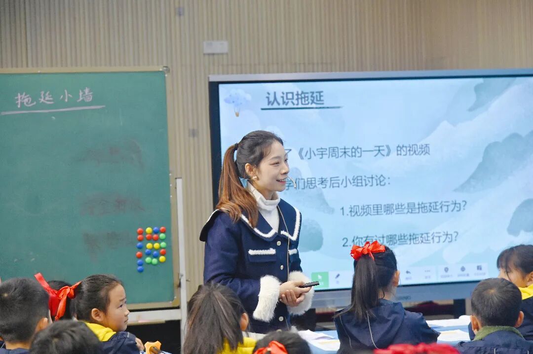 育才小学陈泓妃老师执教《不做拖拉的“小蜗牛”》。教学设计有趣,贴合学生学情,结合学生实际情况解密拖延的原因及后果,并在课堂上根据老师提示一步一步找到不拖延的好处和办法,让孩子们学会有效管理时间养成不拖延的好习惯。