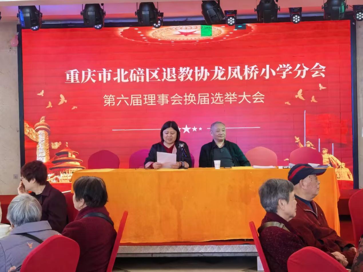 2026年3月30日,北碚区教退协龙凤桥小学第六届分会换届选举大会隆重召开。区教退协秘书长蒲仑、学校领导及退休教师代表参加会议。本次大会应到会员80人,实到59人,符合换届选举法定程序,会议顺利完成各项议程。