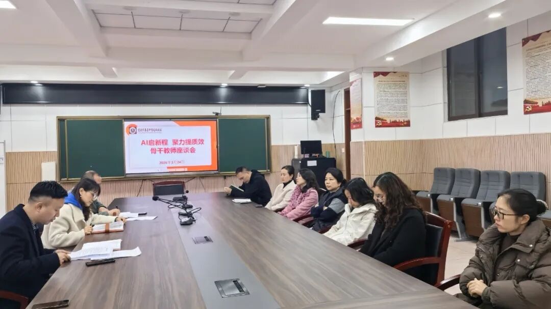 为汇聚教育智慧,激活骨干教师成长动能,助力学校教育教学高质量发展。2026年3月24日,重庆第一二二中学校(重庆市兼善中学龙凤校区)召开了骨干教师专业发展座谈会。副校长范家洪、副校长杨建军与全体骨干教师齐聚一堂,以“AI启新程·聚力提质效”为主题,围绕AI赋能教育教学、队伍建设、管理优化等畅所欲言、建言献策,为学校未来发展擘画蓝图、凝聚共识。