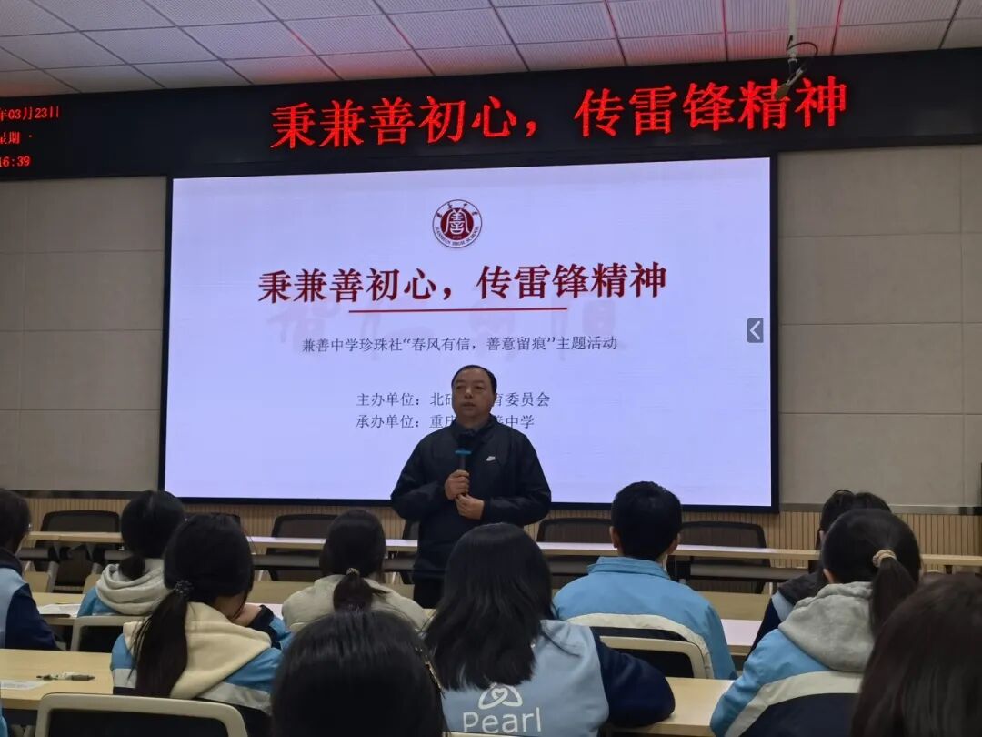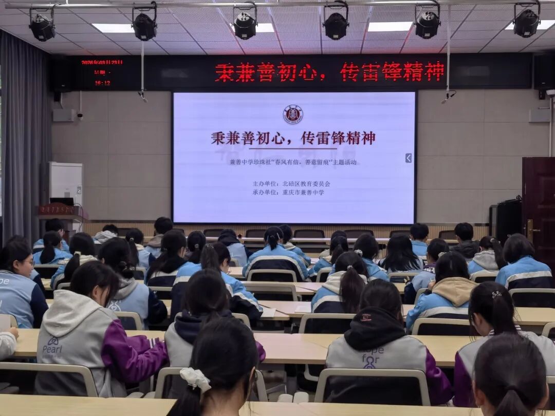 为深入传承雷锋精神,践行学校“兼善教育、兼善天下”的文化内核,引导珍珠生以实际行动传递善意、践行初心。3月23日,重庆市兼善中学举行以“秉兼善初心·传雷锋精神”为主题的珍珠社三月主题活动。全体珍珠生、珍珠社指导老师及特邀嘉宾共同参与了本次活动。