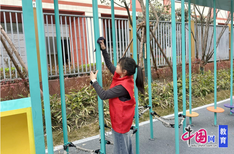 学雷锋践初心,绿美行动暖社区。3月3日,在第64个“学雷锋纪念日”来临之际,该校红领巾志愿者服务队走出校园,走进社区街心公园,开展“学雷锋 护家园”文明新风实践活动,用实际行动传承雷锋精神、践行环保理念。活动中,小志愿者们身着志愿服装,手持清洁工具,分工明确、干劲十足:弯腰细致捡拾草坪、步道间的烟头、纸屑等杂物,认真擦拭健身器材的扶手与坐凳,不放过任何一处卫生死角。他们通过辛勤劳动,让公园环境变得整洁清爽,赢得了往来居民的一致赞许。此次活动将学雷锋精神与生态环保实践深度融合,不仅美化了社区环境,更让学生在劳动中体会奉献的意义,在实践中增强社会责任感,让雷锋精神在新时代绽放绿色光彩。