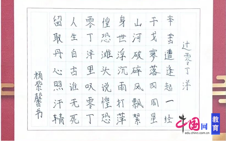 诵写爱国诗歌,弘扬长征精神。高年级同学还在班级开展了爱国诗歌分享会。同学们精神饱满、声情并茂地朗诵了一首首气势磅礴的爱国诗歌,用纸笔抄写了一首首爱国诗词。他们用铿锵有力的声音歌颂长征精神,用方正规范的笔触抒发爱国情怀,展现了新时代少年传承红色基因、立志报效祖国的坚定信念。