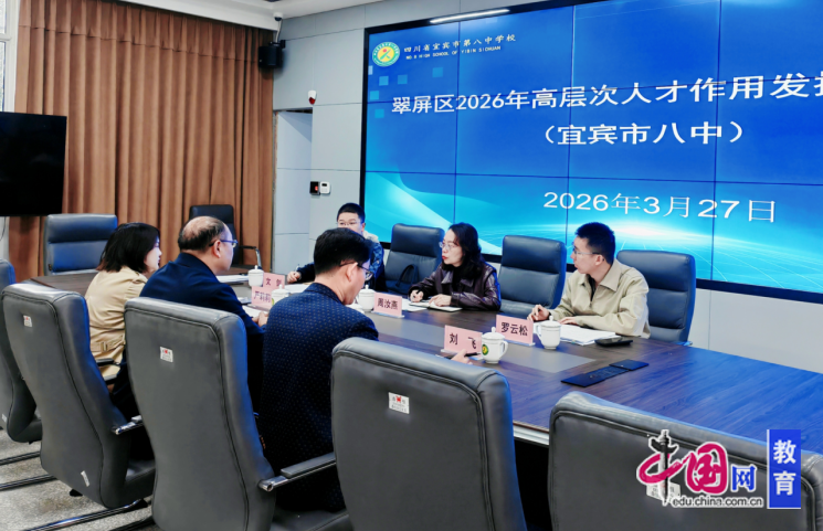为全面掌握高层次人才作用发挥情况,认真研究新形势下人尽其才、才尽其用的有效措施,按照翠屏区委组织部统一部署,3月27日,宜宾市翠屏区委编办副主任周汝燕、翠屏区委人才办罗云松、翠屏区教育和体育局文剑一行深入宜宾市第八中学校,开展2026年高层次人才作用发挥情况实地调研。