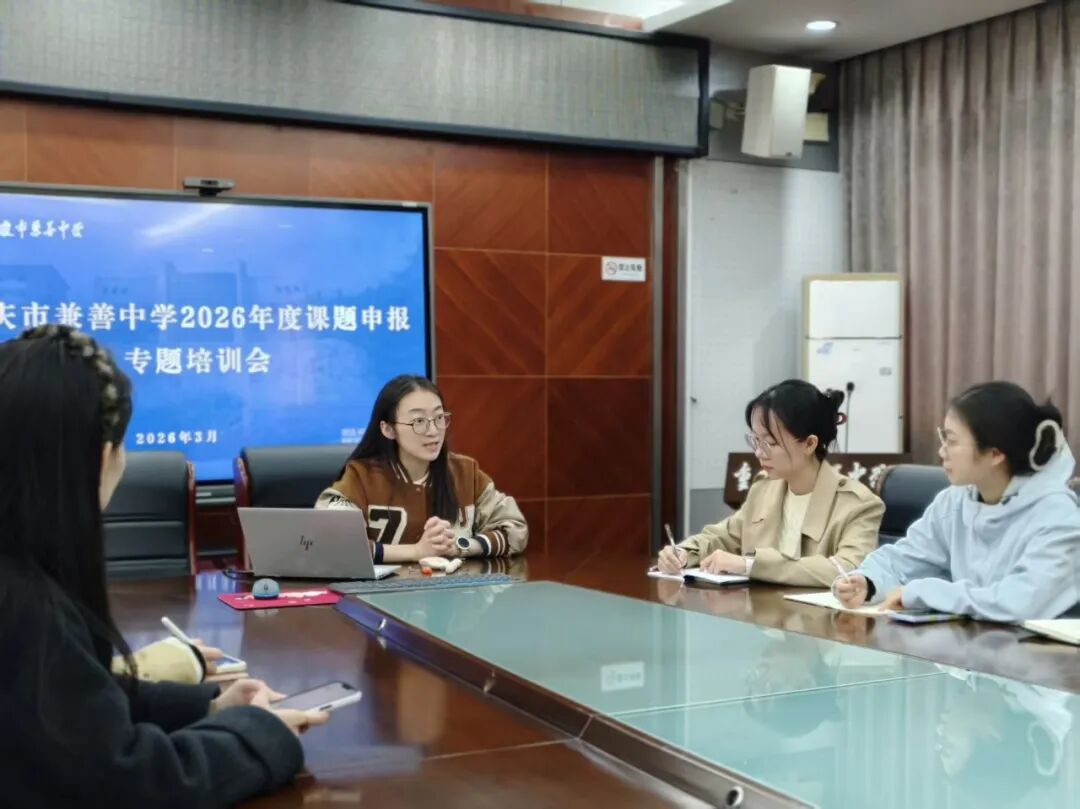 为全面落实重庆市北碚区教育科学规划办公室《关于组织开展“十五五”规划2026年度人工智能赋能教育教学专项课题申报工作的通知》(碚教规办〔2026〕1号)要求,确保学校教师深刻理解申报要求、精准把握研究方向、规范撰写申报材料,近日,重庆市兼善中学精心统筹部署,分层开展线上、线下两场专题培训,为教师高质量完成课题申报提供全流程专业指导与有力支撑。
