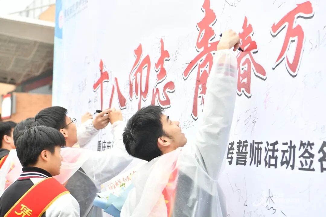 “决战高考,笔破长风,挥笔如剑,直指苍穹……”3月28日,铿锵誓言响彻重庆市江津中学校运动场。尽管天降濛濛细雨,却丝毫未减现场热血氛围,全校1760余名高三学子齐聚赛场,2080余位家长亲临见证,江津中学2026届高三成人礼暨高考冲刺誓师大会燃情启幕。