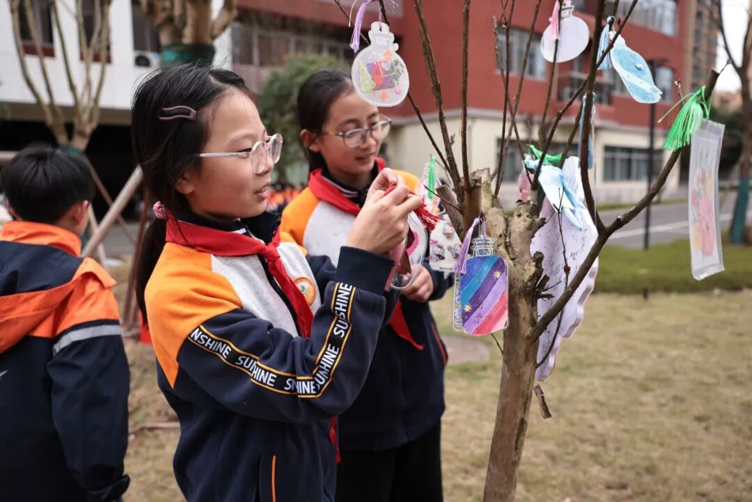 孩子们也没闲着。语文课上,他们一笔一画写下心愿卡:美术课上,他们亲手制作心愿瓶:课余时间,一遍遍练习朗诵和合唱。有孩子偷偷问老师:“我们的树,以后会开花吗?”老师笑着点头:“会的,就像你们一样。”