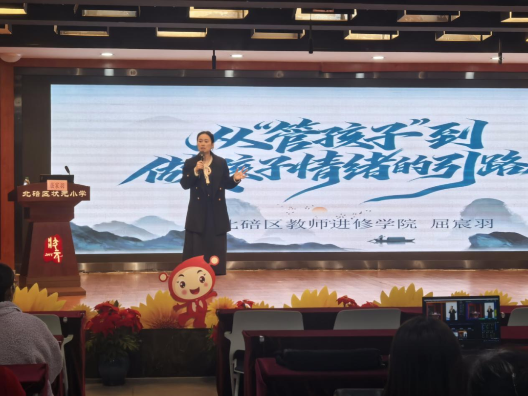 家长会伊始,学校特邀北碚区教师进修学院家庭教育教研员屈宸羽老师作《从“管孩子”到做孩子情绪的引路人》专题讲座。屈老师结合实用方法,引导家长从管控者转为情绪引路人,通过“生气能量包”“难过能量包”及沟通公式等方式,帮助孩子接纳与释放情绪,为家庭教育提供科学指导。