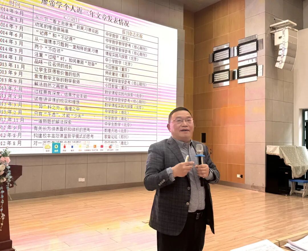 除了试卷讲评课,廖老师还分享了专题复习课的论文写作思路。他以“如何回归教材、处理例题习题”为切入点,提醒老师们:教研写作要扎根教材、立足学情——深挖教材例题本质,通过一题多解、变式拓展,让习题成为培养学生思维的载体,再将这些实践思考整理成论文,既是个人经验的沉淀,也能为同行提供实用参考。