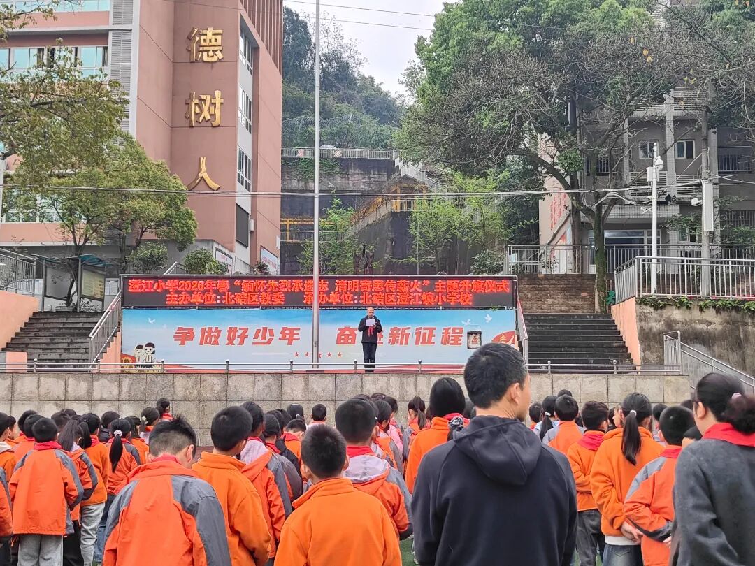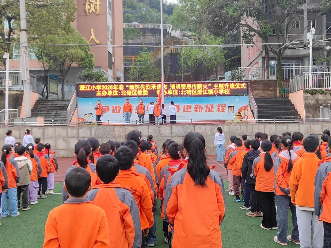 春风寄哀思,松柏映初心。在清明节来临之际,重庆市北碚区澄江小学第五周 “缅怀先烈承遗志 清明寄思传薪火”主题升旗仪式庄严举行。全体师生整齐列队、肃立注目,在庄重的仪式中感悟红色精神,厚植爱国情怀。