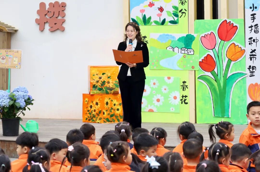 园长与小朋友们开展春天对诗游戏,称赞了各班的种植小惊喜,还暖心寄语,祝愿每一位曙光娃都能在自然与科学的滋养下,健康快乐、向阳而生。