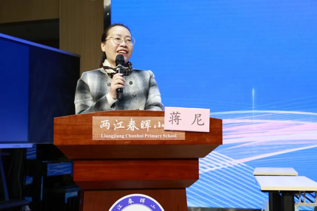 两江春晖小学刘静校长围绕《数聚春晖 智育良师》的主题,讲述了学校以“春生万物 晖光日新”的办学理念为脉络,以数学思维为钥匙,巧用“加减乘除”优化管理、活用“转化统筹”破解难题,创新性构建“三角形共生共长”教师发展体系。拆解团队建设“复杂问题”,将松散师资凝聚为“最优解”,实现了教师队伍从“各自为阵”到“共生共长”的跨越。