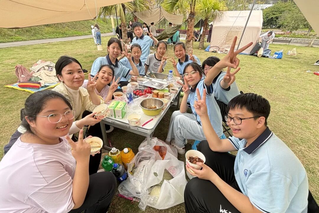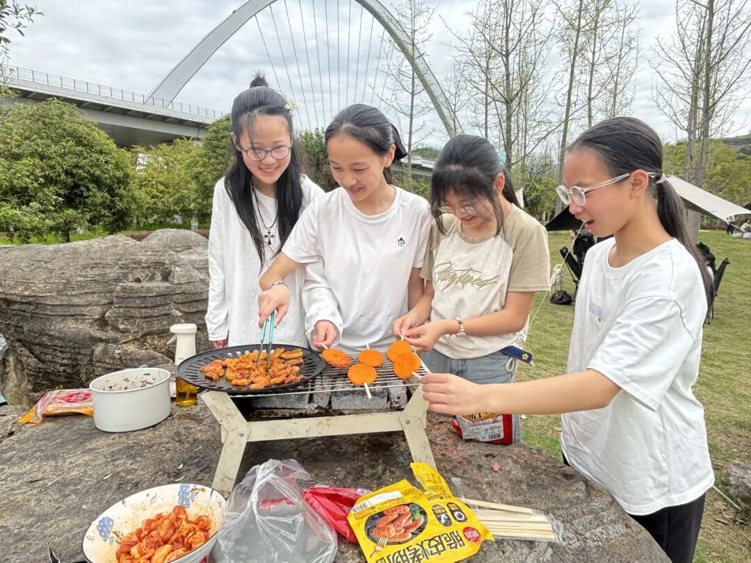8 公里远足的疲惫、生火做饭的反复尝试,都化作了大家比出的胜利手势,汗水里藏着坚持,坚持中收获勇气;勾肩搭背的身影、齐心协力垒灶台、你分我享的饭菜,凝聚成温暖的团队力量,也刻下了浓浓的集体归属感;红旗水库和竹溪河公园的田野溪流、长辈讲述的乡土故事,让青山绿水更显亲切,也让大家心中多了一份热爱家乡的自豪。