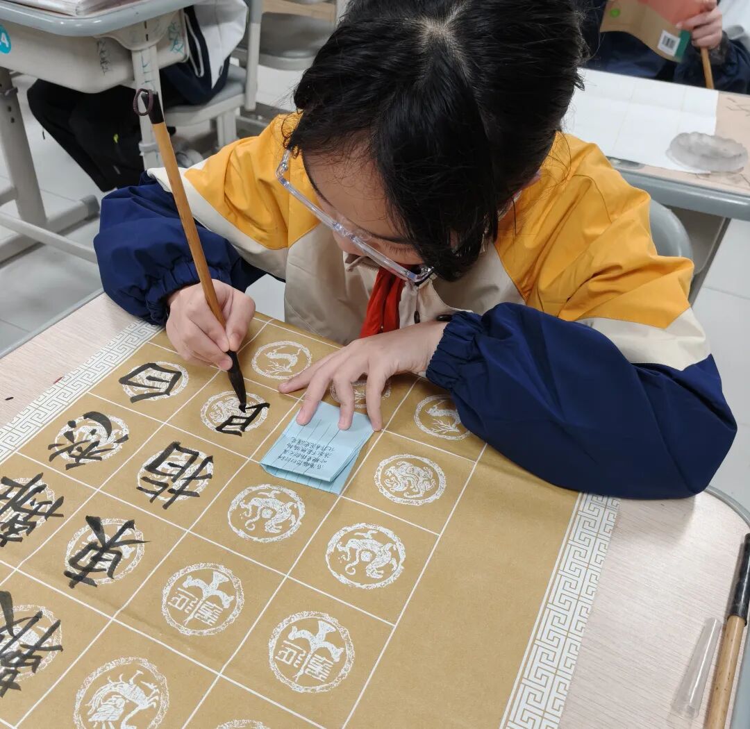 3月24日早操,“典耀中华,赓续文脉”为主题的书法比赛分校区在教室里率先拉开帷幕。同学们以笔为媒,在一撇一捺间书写经典、传承文明。一笔一画见精神,一幅幅工整美观的书法作品,展现了同学们扎实的书写功底和对中华传统文化的热爱,为后续大阅读活动营造了浓厚的文化氛围。