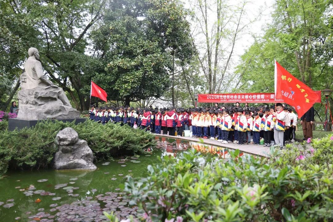 春风和煦,清明将至。2026年4月1日上午,重庆市北碚区人民路小学三年级全体师生徒步来到北碚公园作孚园,开展以“追思爱国先贤,传承作孚精神”为主题的社会主义核心价值观教育活动,在实践中学习先贤品格,在行动中厚植家国情怀。