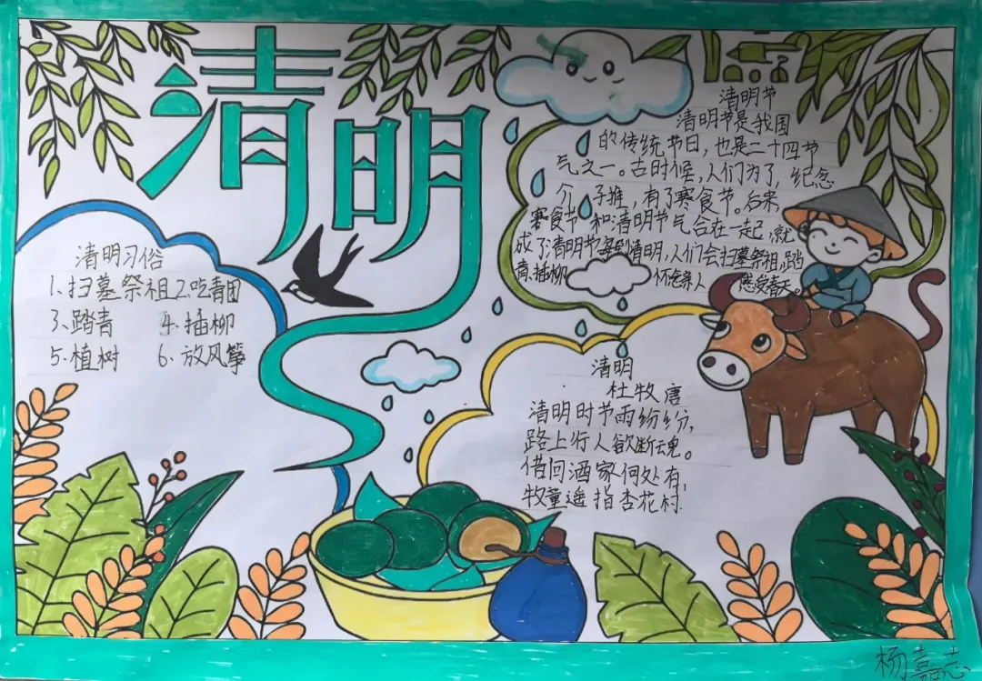 各班级创新开展手抄报、诗配画、清明书签等创作活动。孩子们以笔为媒、以画传情,用一幅幅精美作品诠释对传统文化的独特理解,抒发强国少年的凌云壮志。